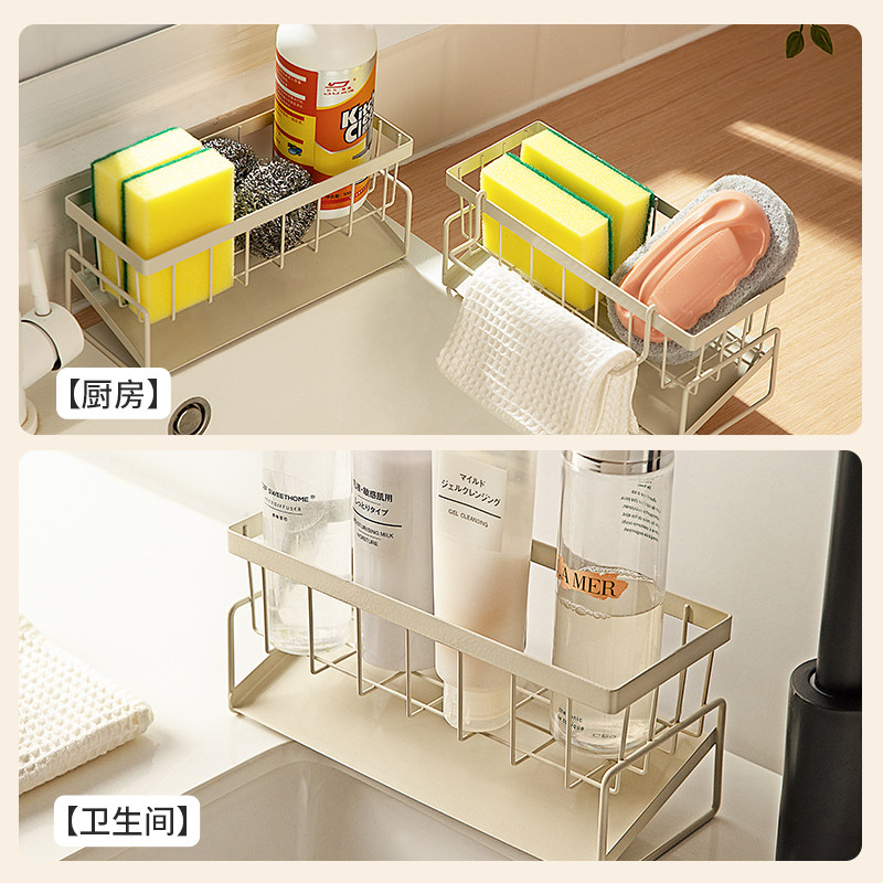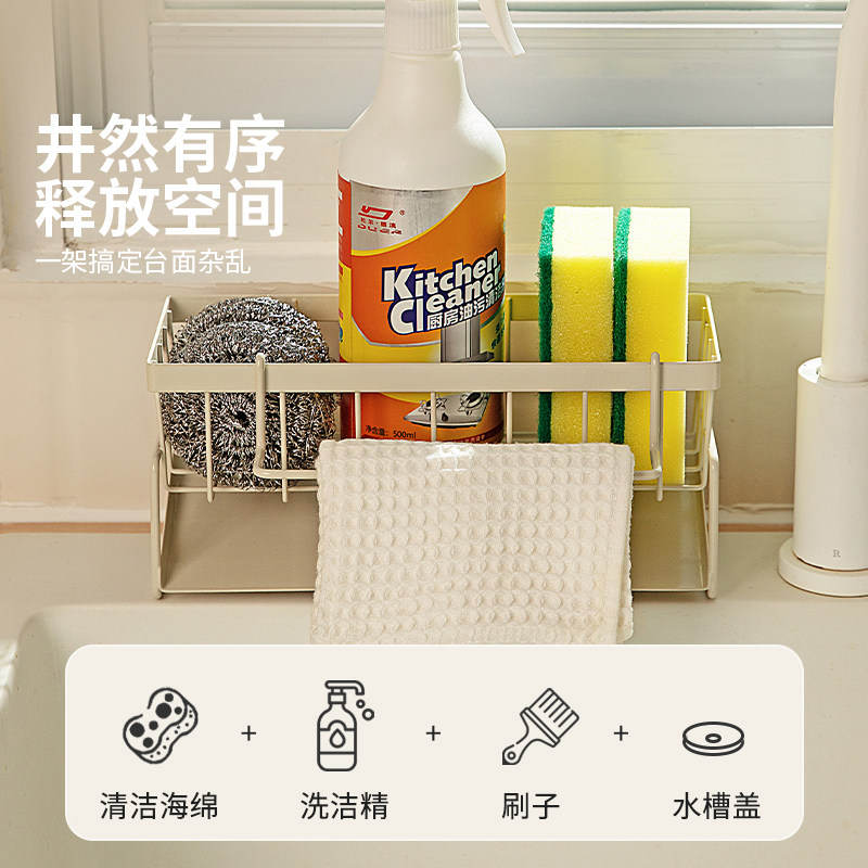 抹布架厨房沥水架免打孔台面壁挂海绵毛巾厨房用品收纳架置物架子
