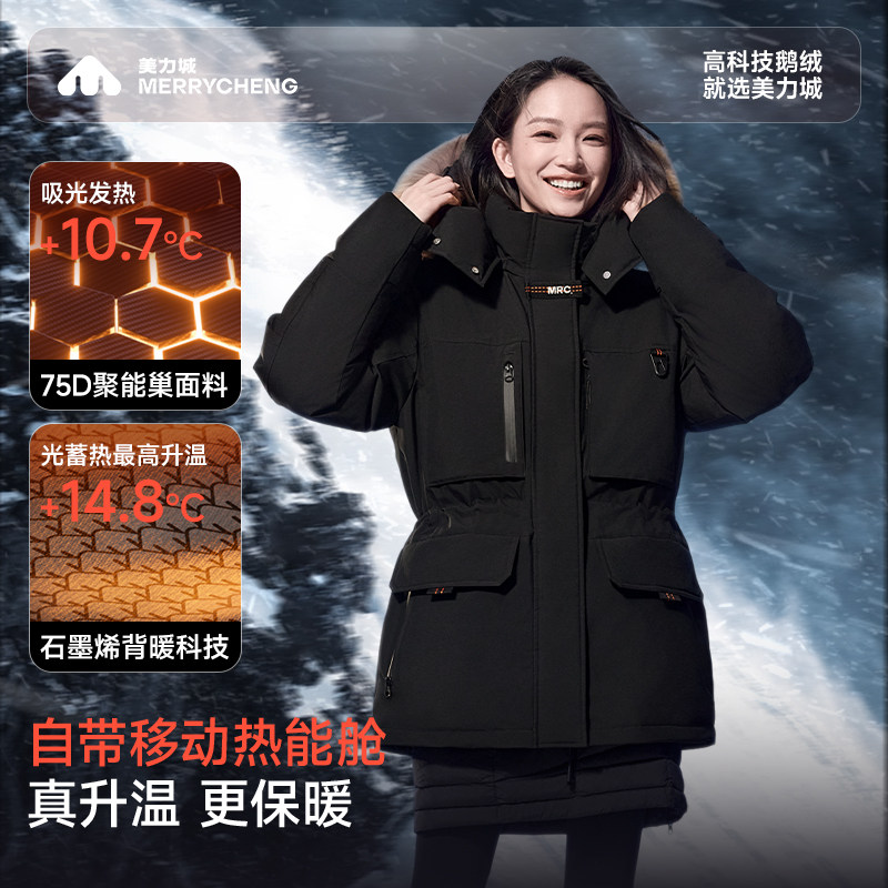 【李佳琦直播间】雪中飞2025鹅绒男女貉子毛领复古工装派克羽绒服