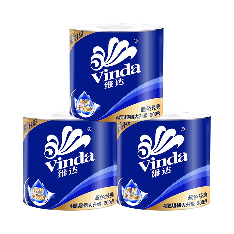 【孙颖莎推荐】维达卷纸蓝色经典有芯4层200g卫生纸巾家用实惠装
