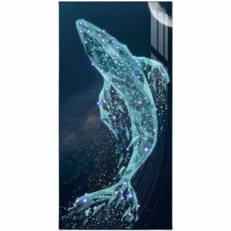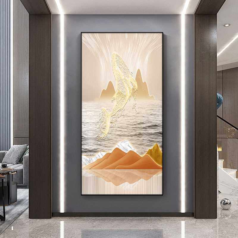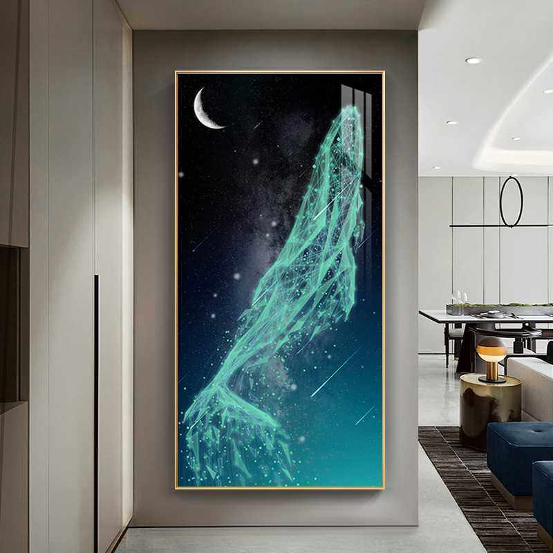 轻奢北欧高档入户玄关装饰画竖版现代鲸鱼壁画客厅餐厅走廊挂画