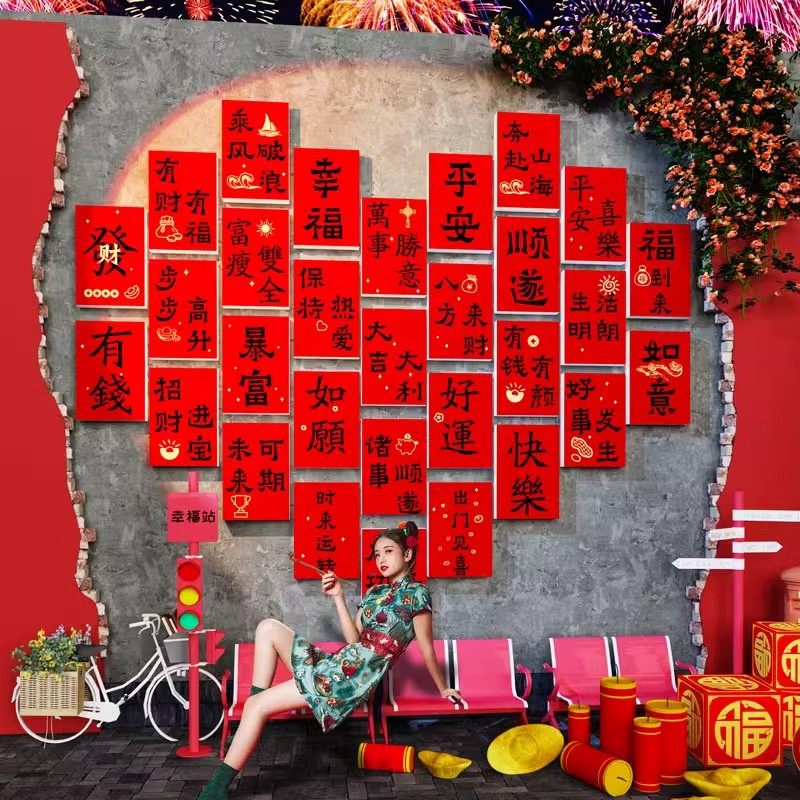 许愿墙贴纸2026马新年网红打卡造背景拍照区装饰春节元旦氛围布置