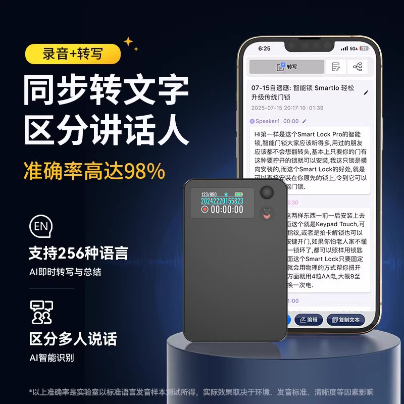 AI智能录音笔会议纪要AI分析总结实时转写翻译录音卡TicNotePIAUD