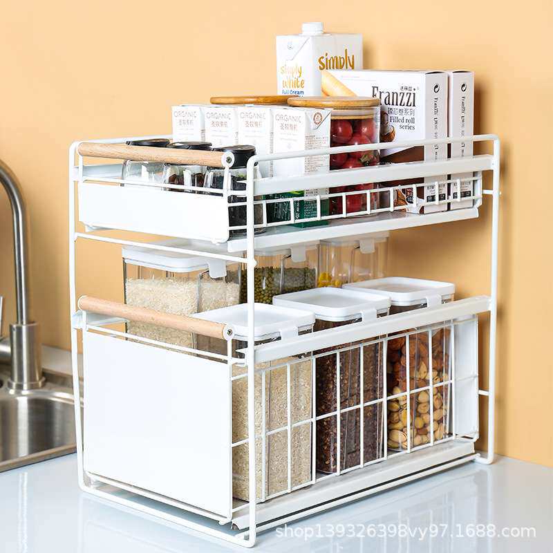 厨房多用途下水槽置物架抽拉式碗碟碗盘收纳盒分隔抽屉餐具杯子架