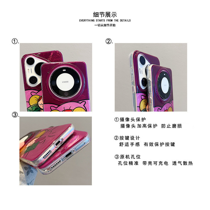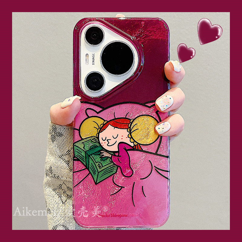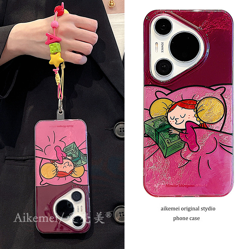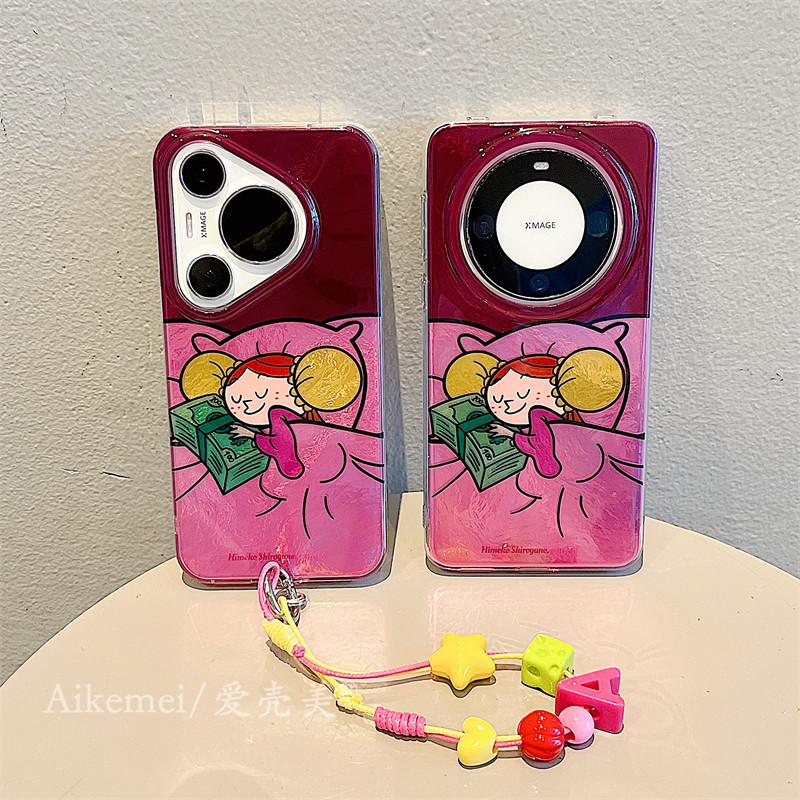 适用华为pura70pro+手机壳p60pro卡通可爱睡觉女孩Pura70链条挂绳p70pro双层锡纸纹mate70pro+全包防摔男女款