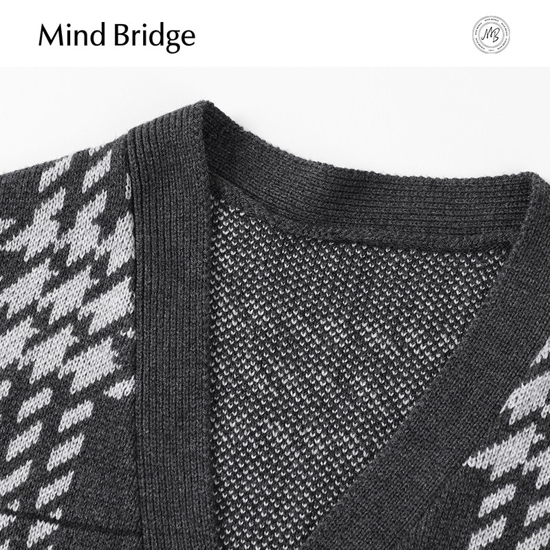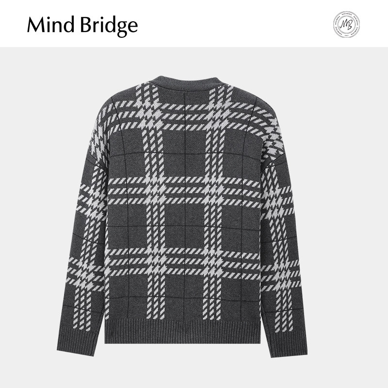 MB MindBridge春季毛衣外套男士学院风格子开衫2026新款V领针织衫