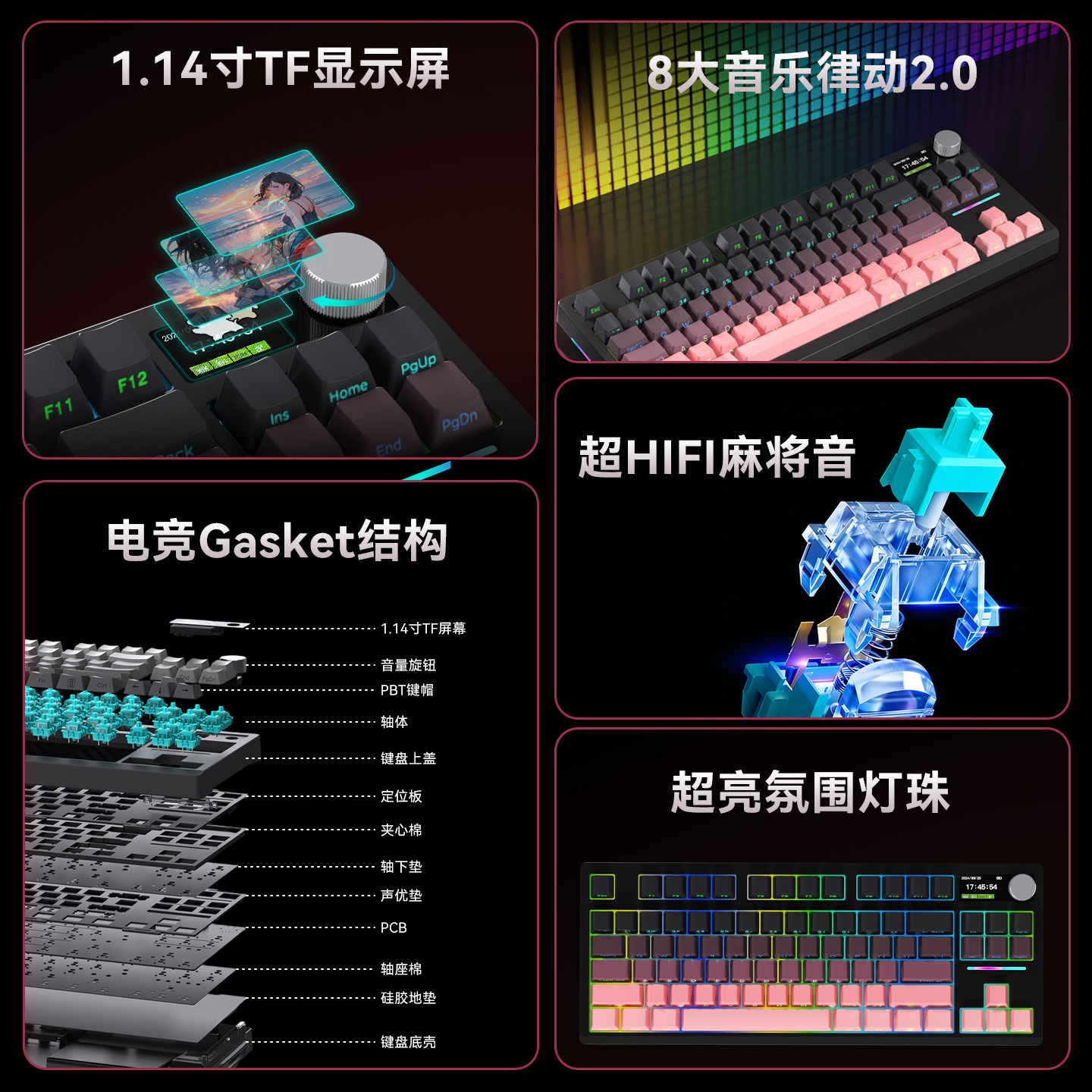 富德三模无线客制化机械键盘87键配列电竞游戏专用女生可爱办公用