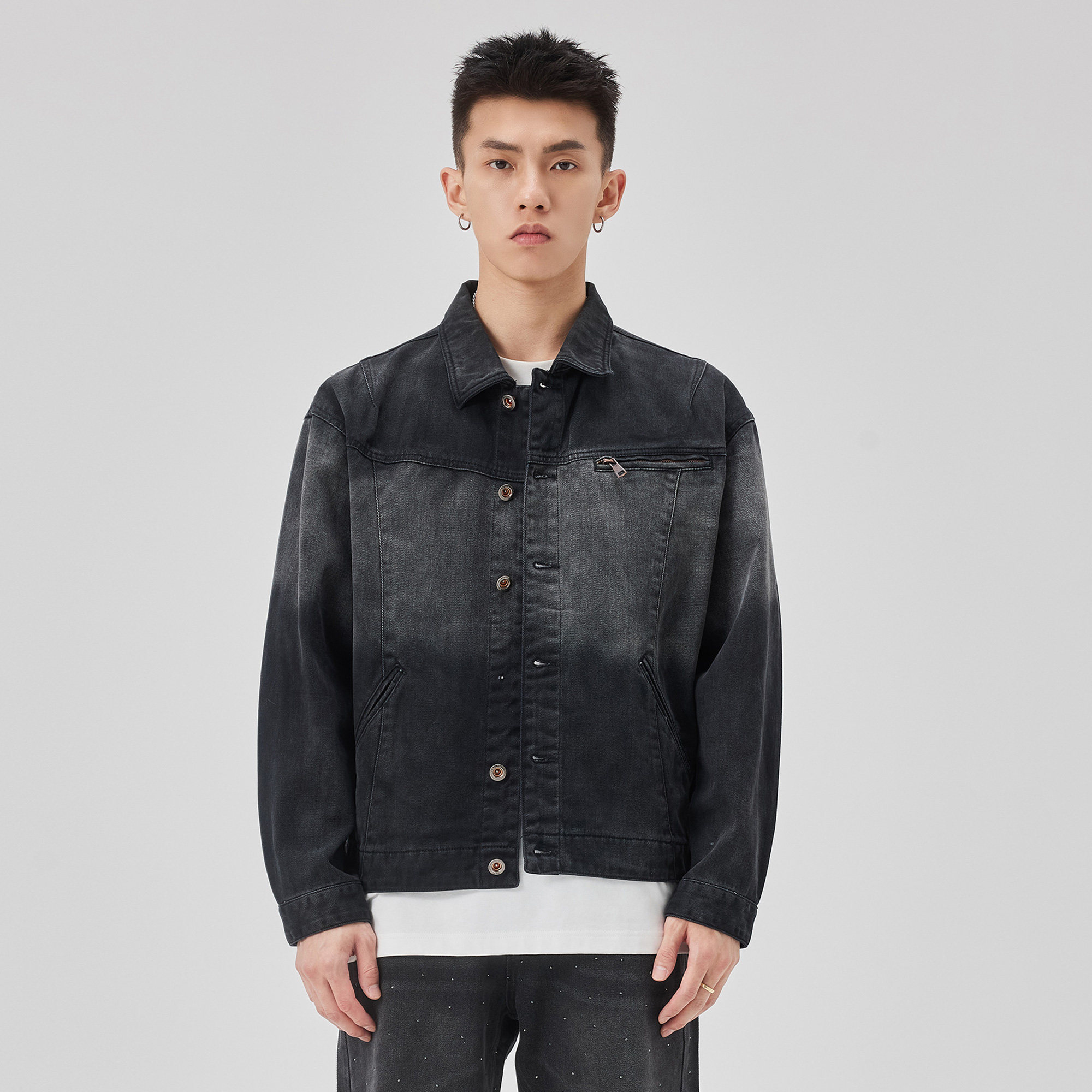Wassup Shark美式牛仔外套男春秋季复古工装休闲夹克百搭翻领上衣