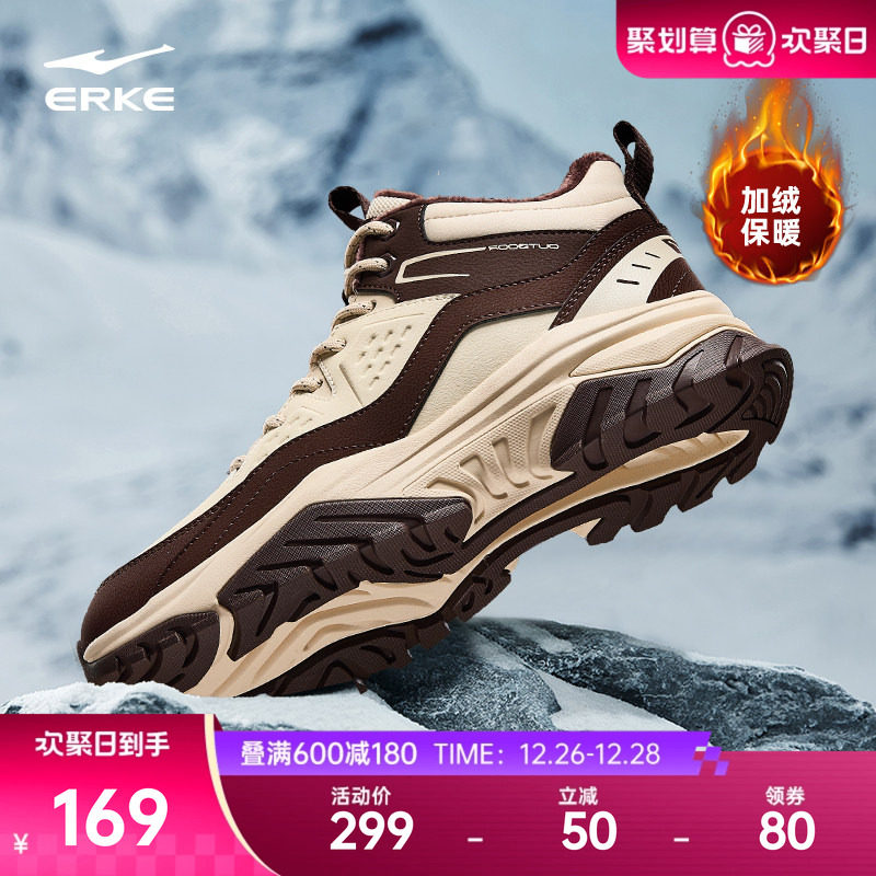鸿星尔克暖阳2加绒休闲鞋女防滑冬季新款棉鞋高帮保暖加厚运动鞋