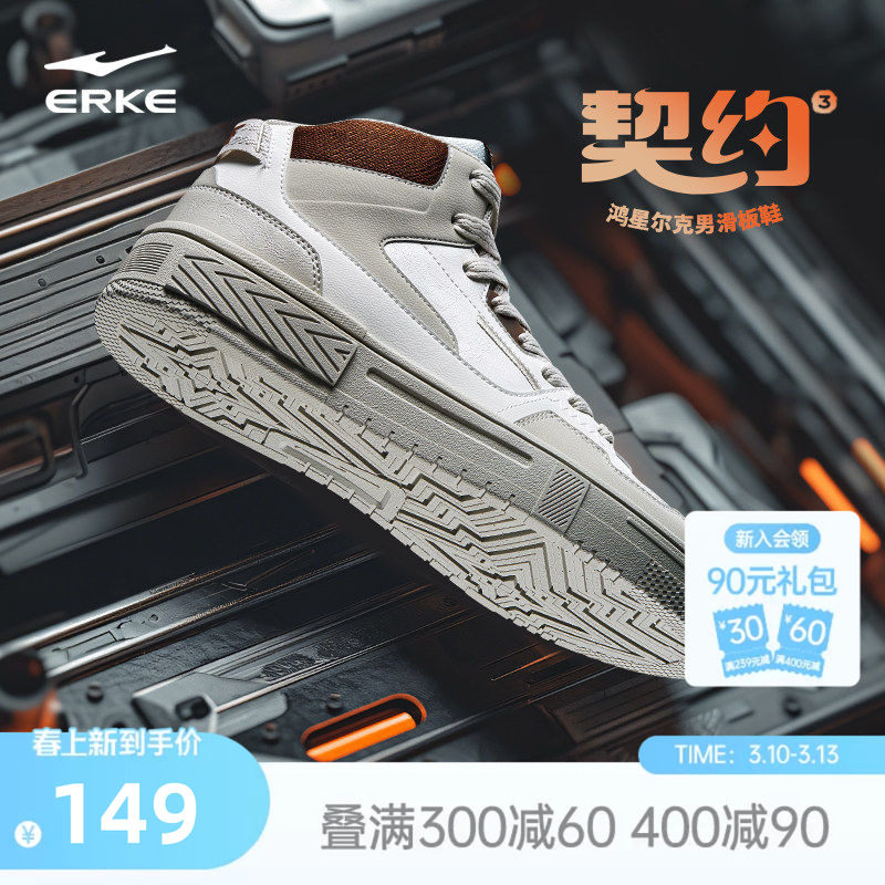 鸿星尔克高帮板鞋春季新款男士鞋子运动鞋厚底休闲鞋复古潮流男鞋