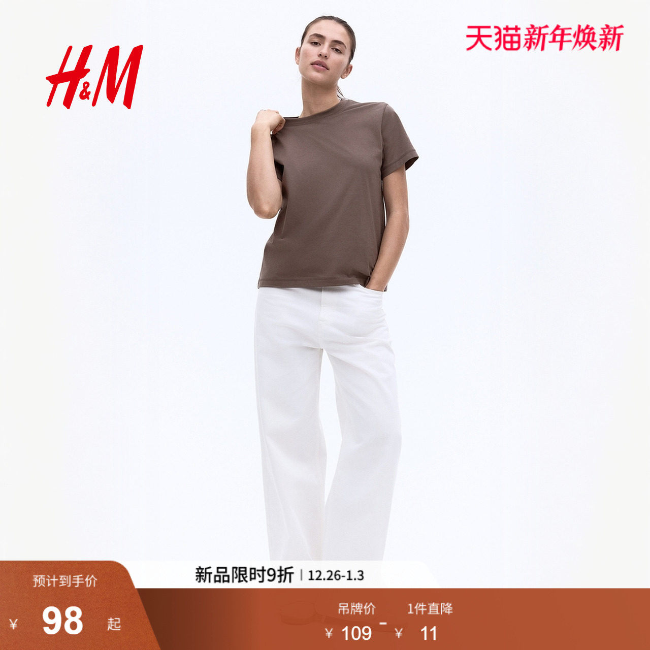 HM女装T恤2025年冬季新款休闲舒适大廓形棉质T恤1290372