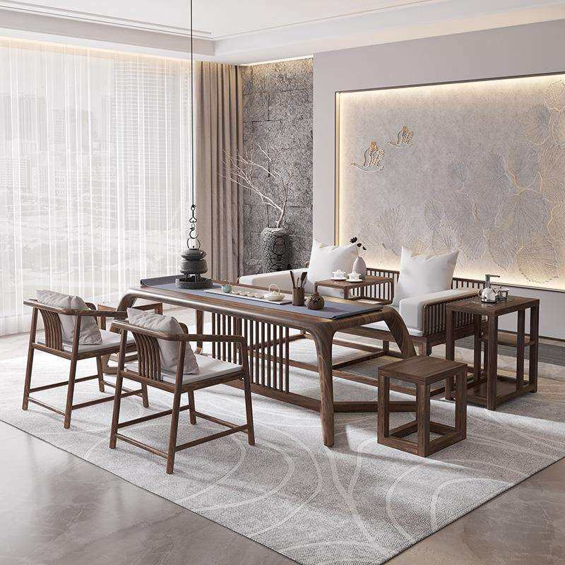 新中式实木罗汉床茶桌椅组合一桌五椅泡茶台茶几客厅家用禅意茶室