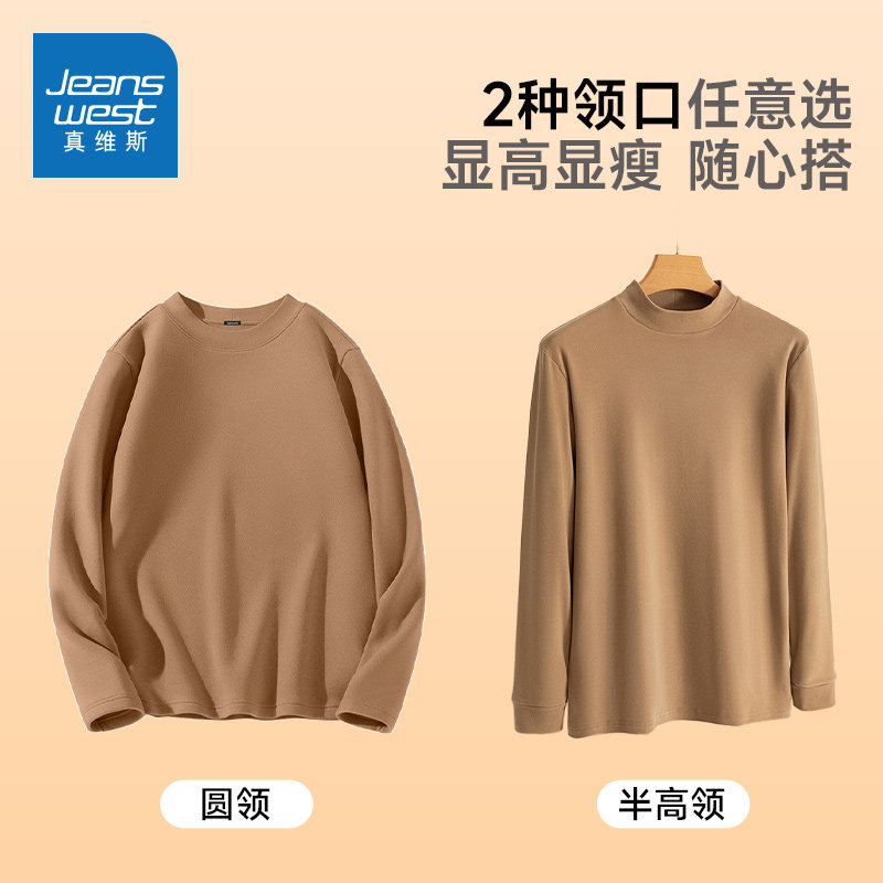NXP真维斯男女同款冬季双面绒长袖T恤洋气纯棉情侣好看上衣打底衫