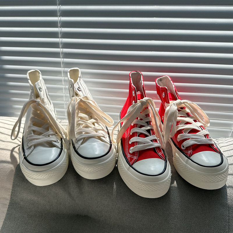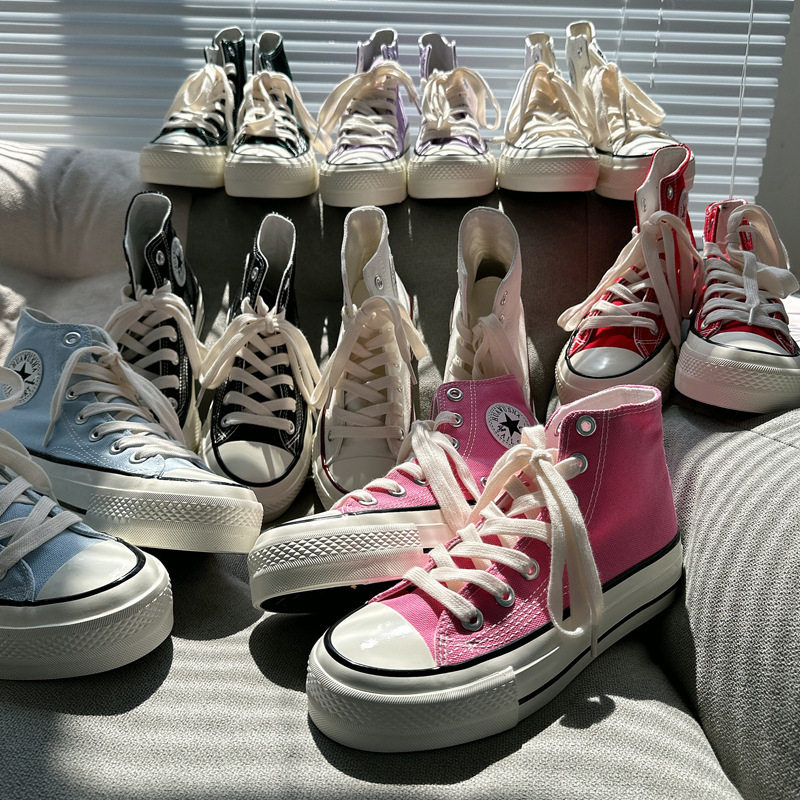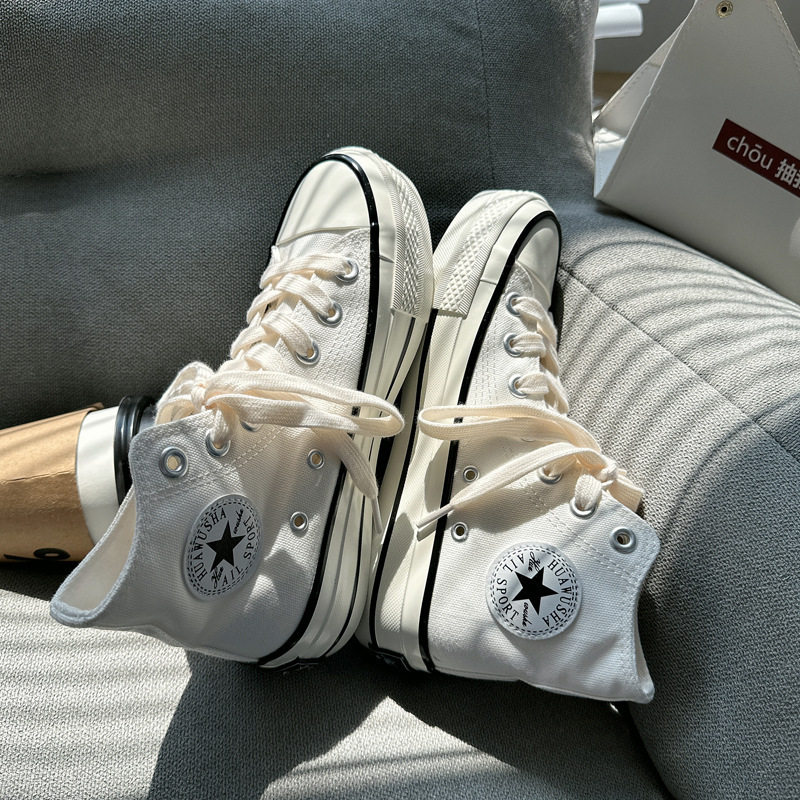 春夏港风休闲鞋复古1970s厚底高帮帆布鞋女百搭休闲鞋学生滑板鞋