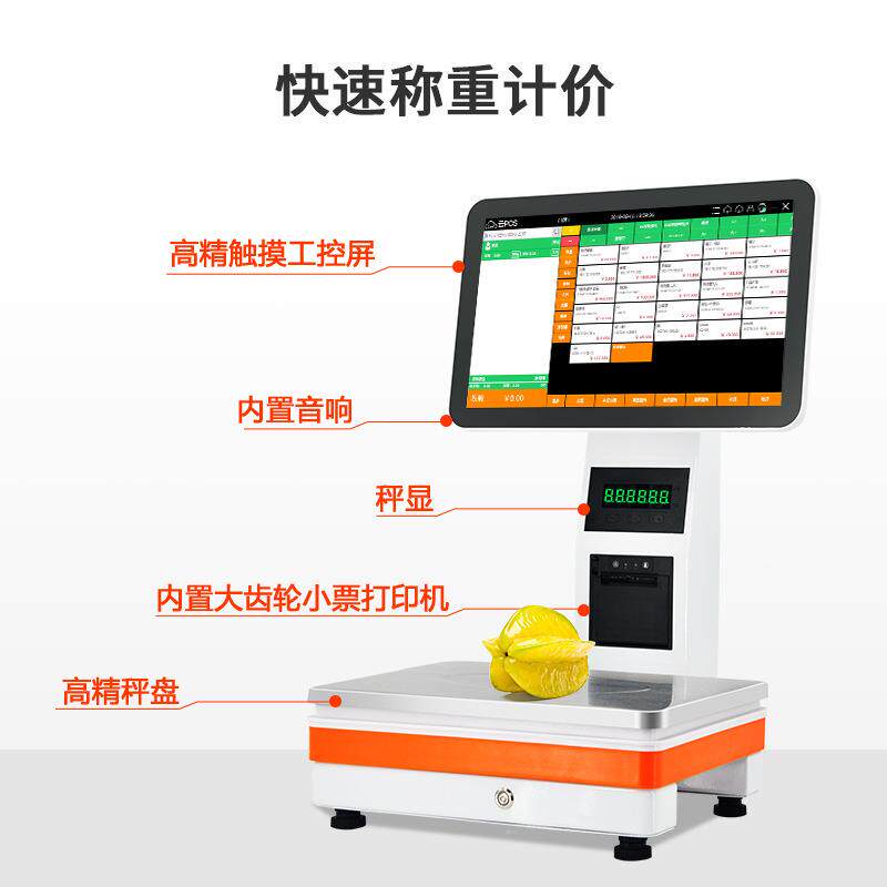 商超蔬果称重收银机15.6寸收银秤智能PC一体秤海外跨境专用收银秤