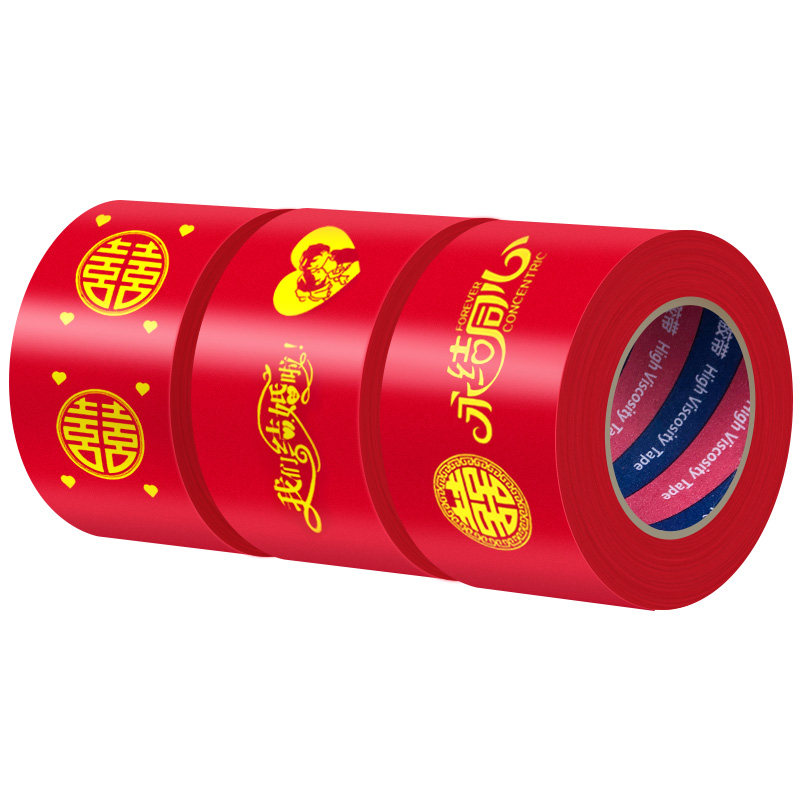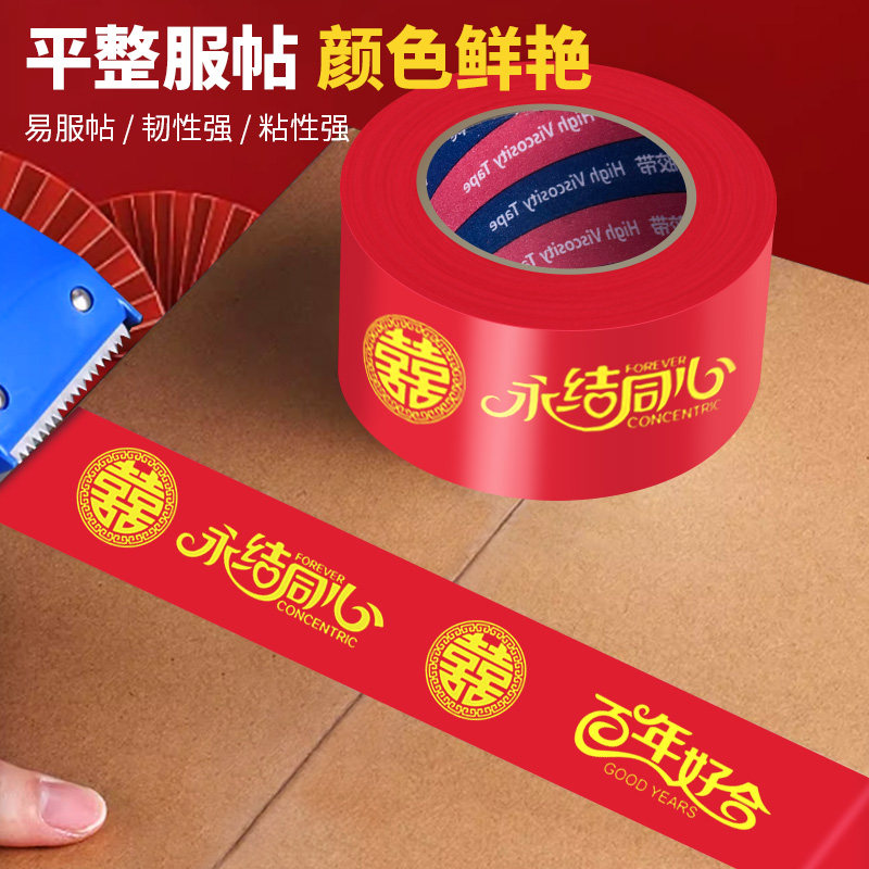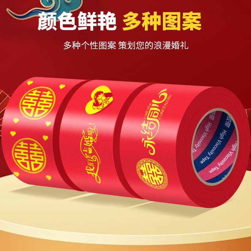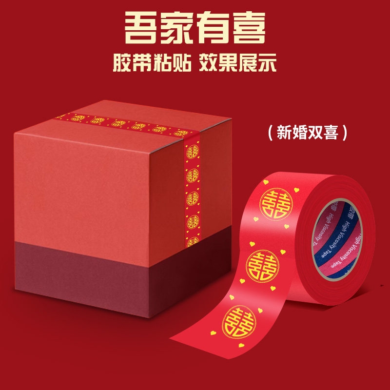 结婚喜字胶带红色双喜陪嫁箱子装饰宽胶布贴婚房布置井盖胶地膜地毯胶喜事用品强力高粘单面布基胶带防水婚庆