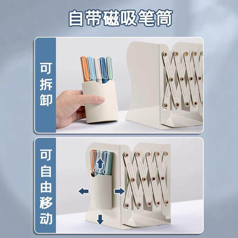 可伸缩书立带笔筒书架一体桌面书本收纳架高中生挡板书夹折叠固定书本立架学生用桌上立书架放书神器收缩定制