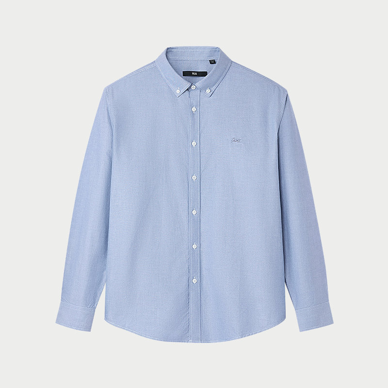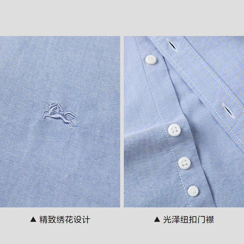 HLA/海澜之家休闲风长袖衬衫26春夏新款制扣领绣花纯棉时尚衬衣男