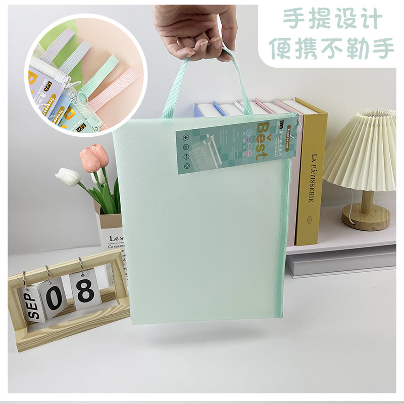 A4透明磨砂防水文件袋A5手提拉链试卷资料产检收纳袋大容量A6笔袋