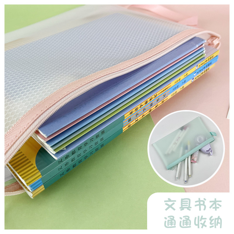 晨光文具学科科目分类袋小学生文件袋拉链式试卷收纳袋透明网纱双层大容量书袋作业资料a4考试专用袋票据产检