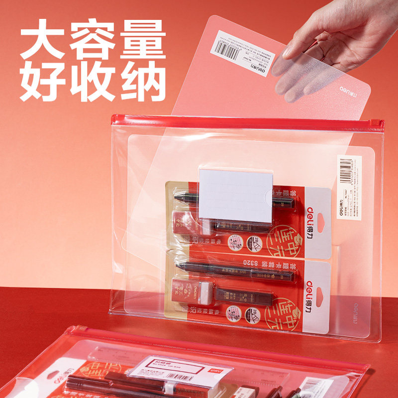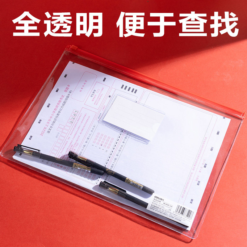 得力拉链袋考试专用a4高透明文具笔袋考试袋学生用试卷袋防水袋a5中考高考考研资料拉边袋试卷袋文件收纳袋子