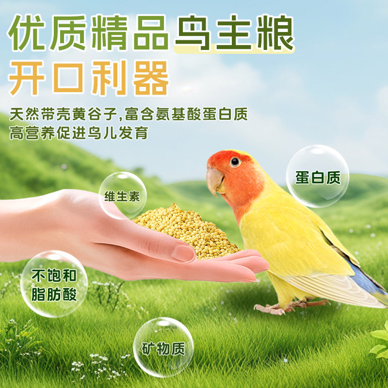 带壳黄谷子鸟粮小鸟食有壳带皮小米鹦鹉饲料虎皮玄风中小型专用粮