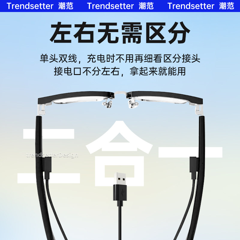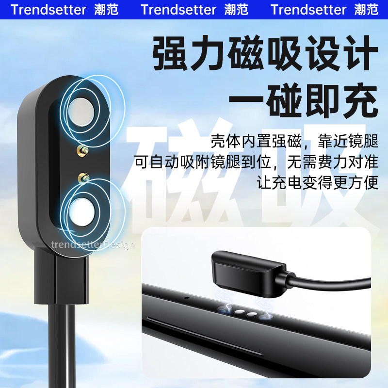 适用界环眼镜充电线智能音频眼镜SS0201GL充电绳充电器一拖二磁吸数据线二针二合一