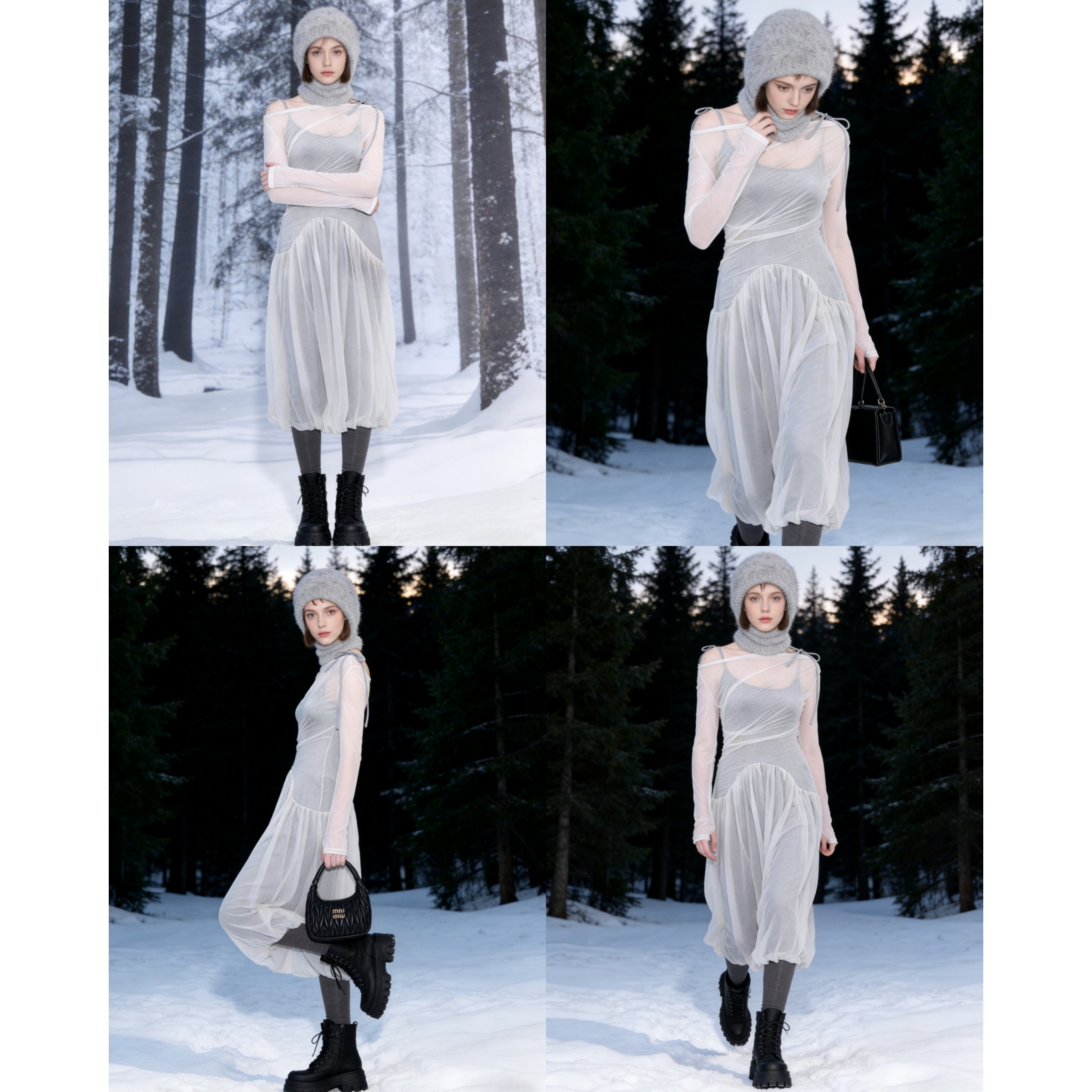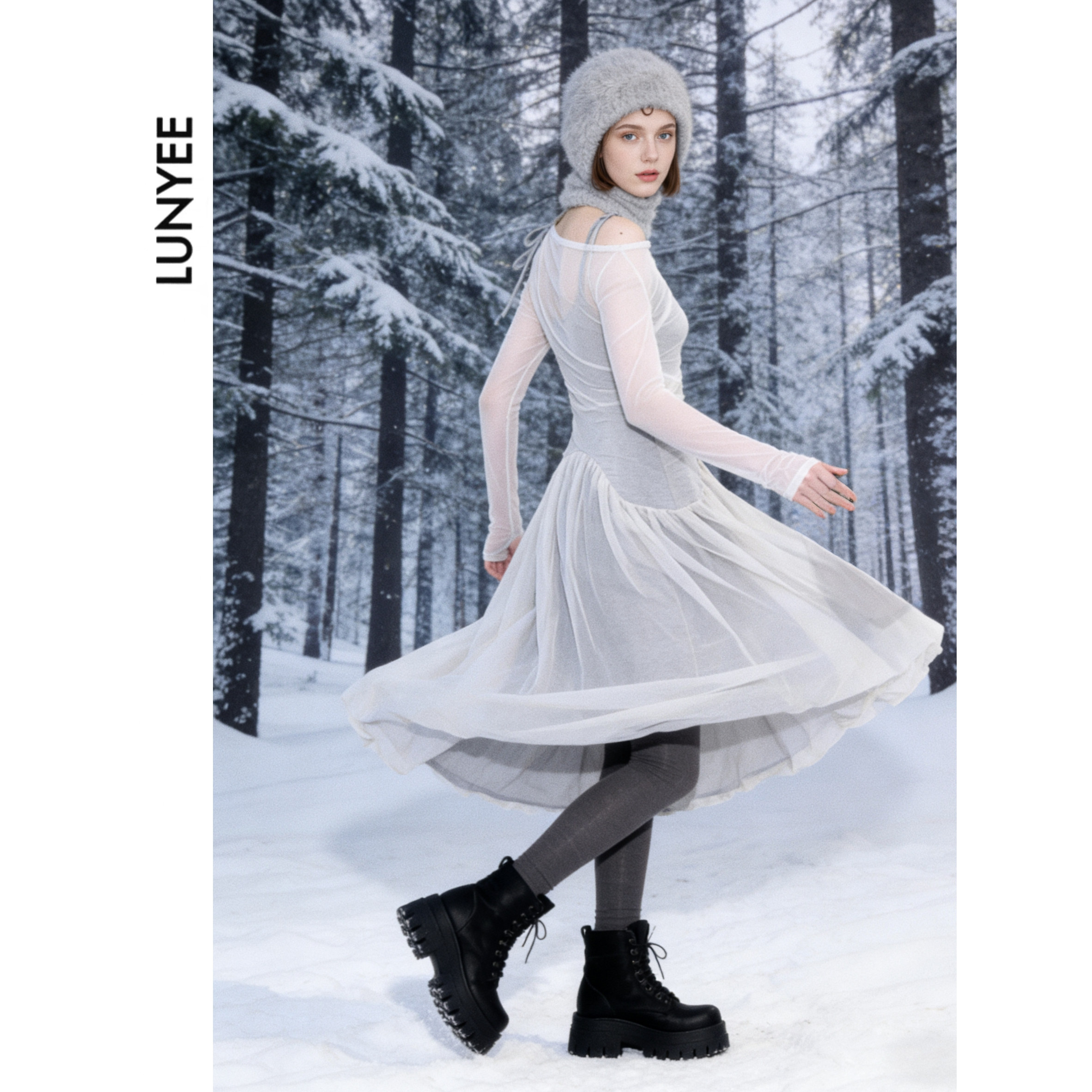 LUNYEE25轻奢夏日防晒吊带连衣裙两穿设计感超仙绝美网纱连衣裙