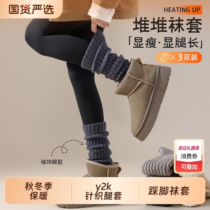 堆堆袜子女款秋冬季保暖中筒袜y2k针织腿套踩脚袜套配雪地靴长袜