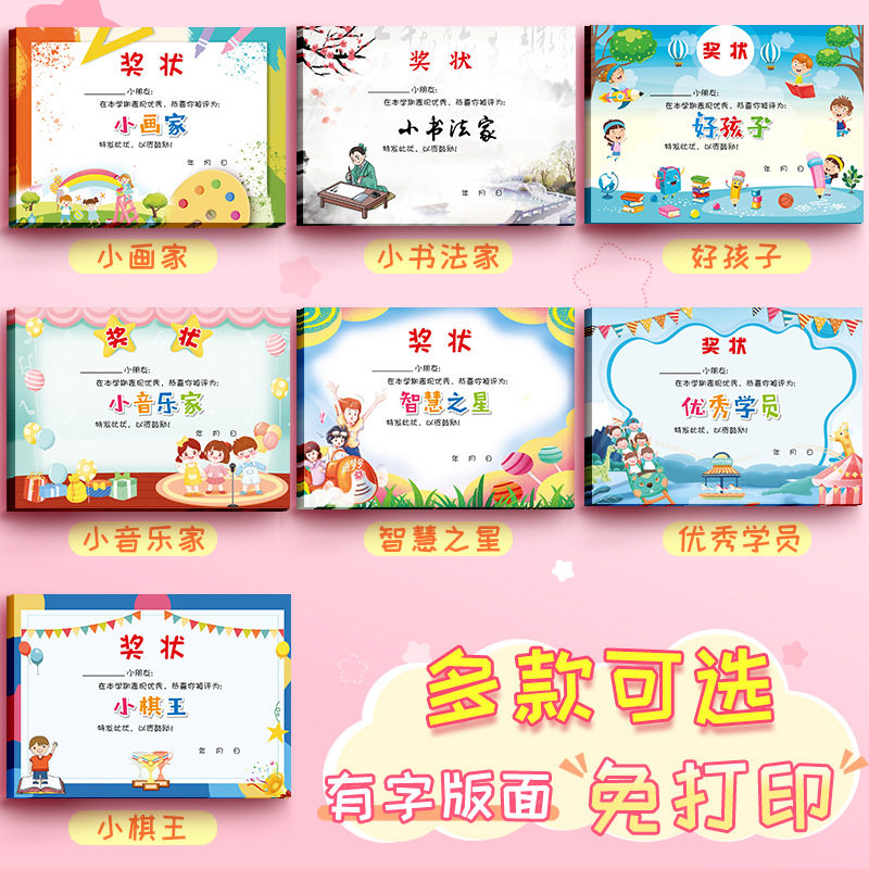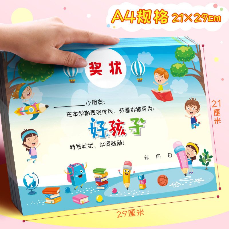 幼儿园小奖状 A4奖状纸奖励好孩子表扬信优秀全勤宝宝毕业奖状打印纸创意儿童小学生多款奖状纸a4可打印定制