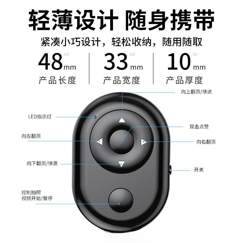 手机蓝牙遥控器电子款拍照自拍杆控制器抖音拍摄神器无线多功能刷视频上下滑看书翻页适用苹果手机通用