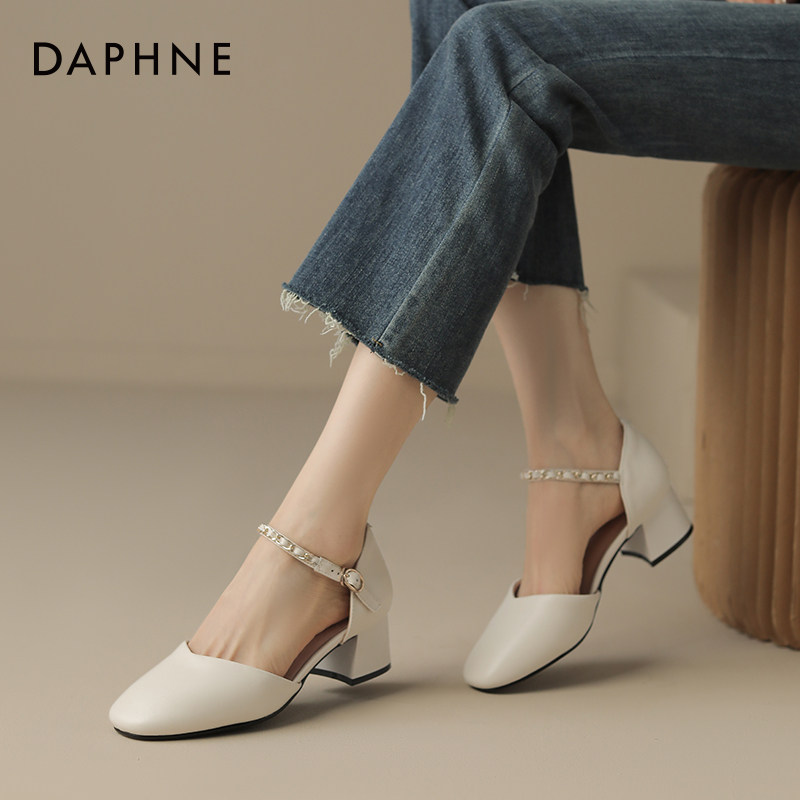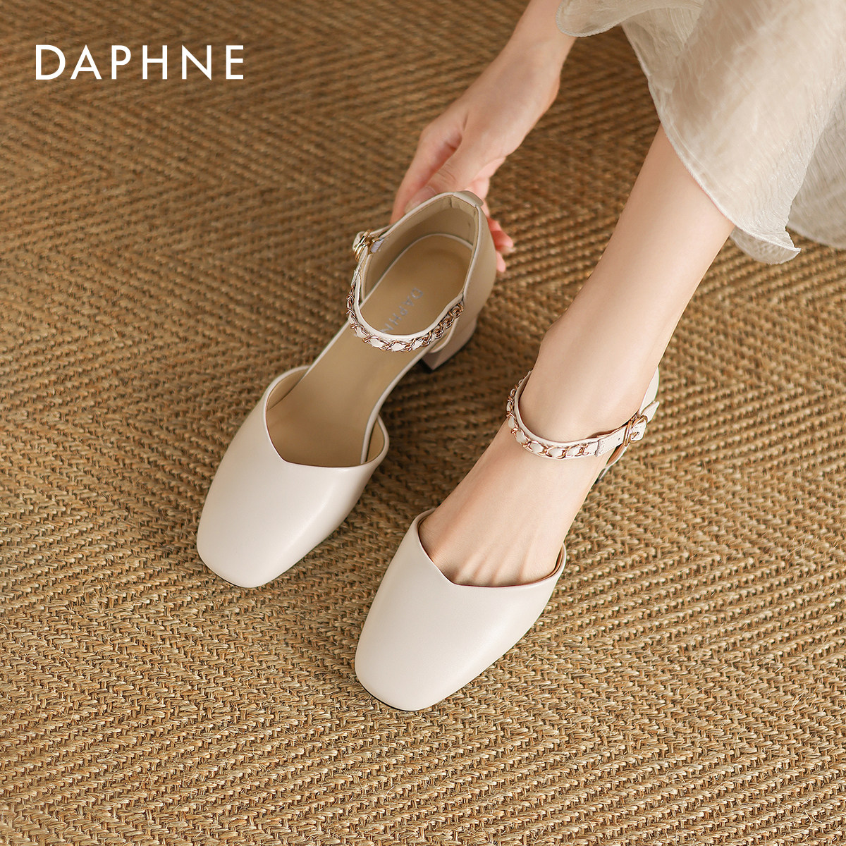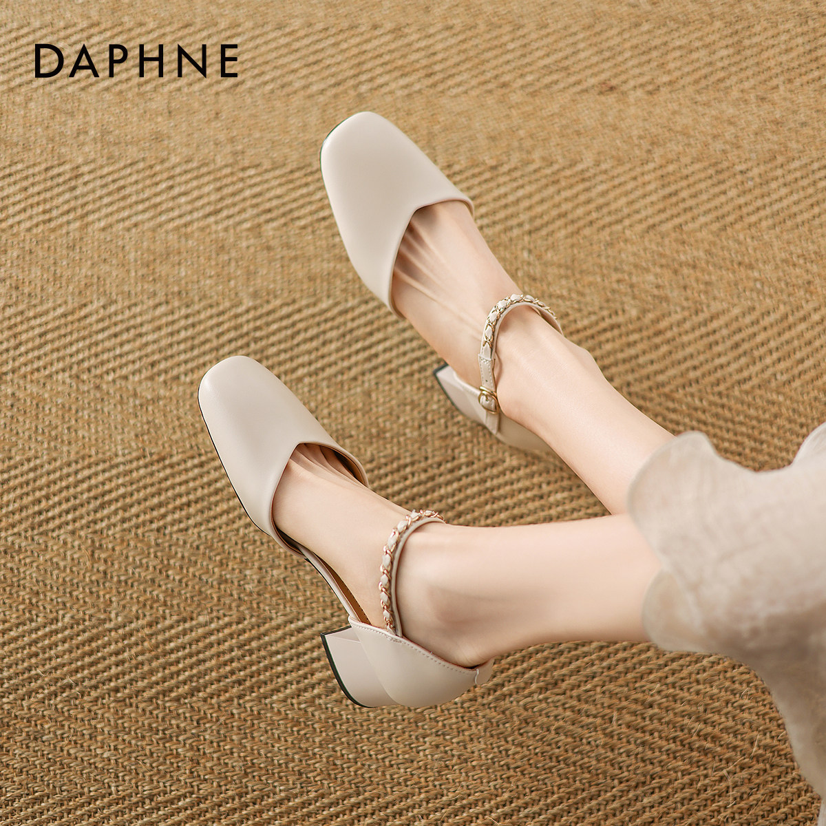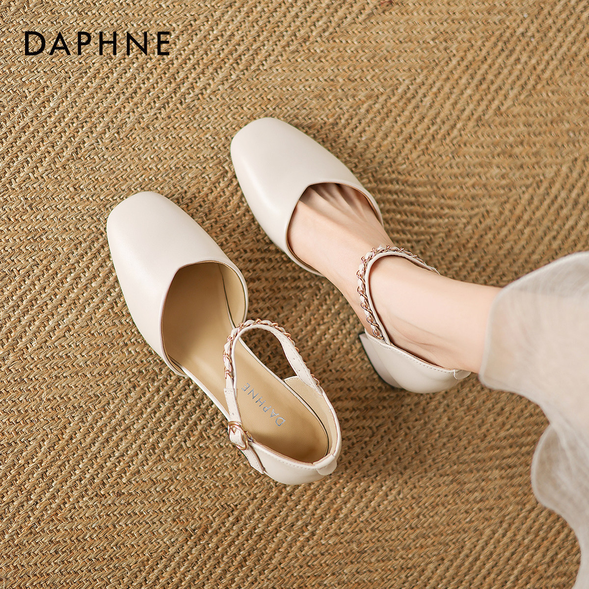 达芙妮包头凉鞋女2025新款夏季粗跟法式单鞋配裙子外穿皮鞋高跟鞋