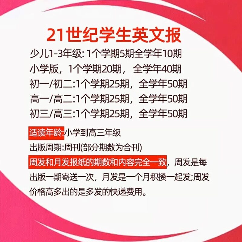 21世纪英语报小学版/初中版/高中版2026年春秋季学期订阅二十一世纪学生英文报纸teens初一初二初三高一高二少儿杂志周报阅读2025