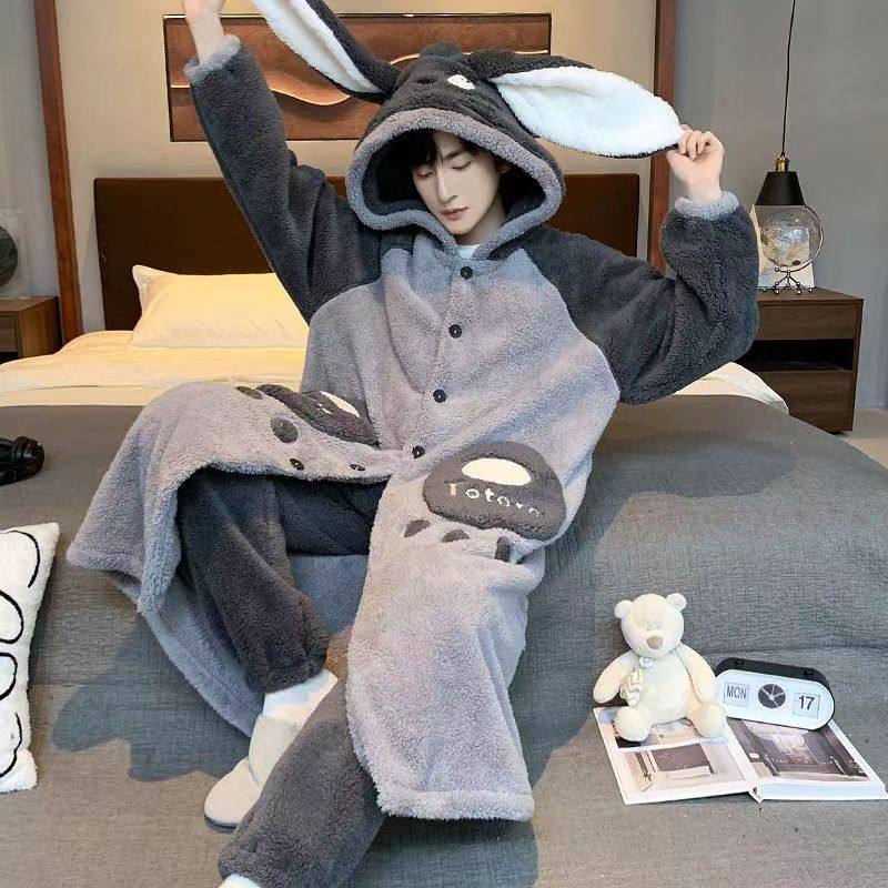 肖战同款猫人暖绒绒家居服半边绒男女2025新款冬季睡衣可外穿加厚