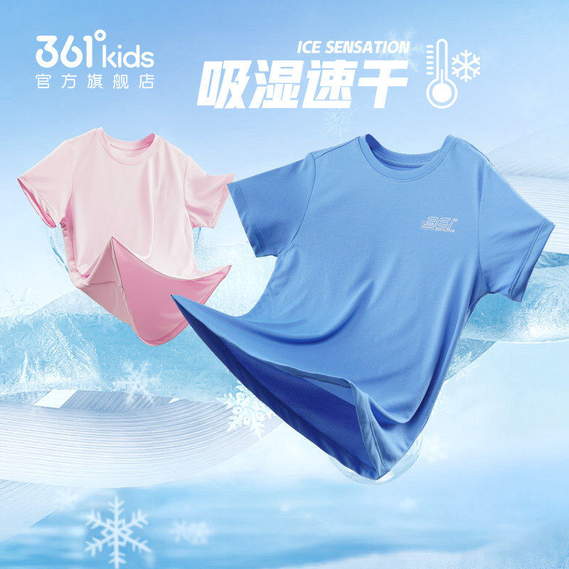 361度童装男童短袖T恤夏季新款儿童速干衣运动男孩半袖女童短T