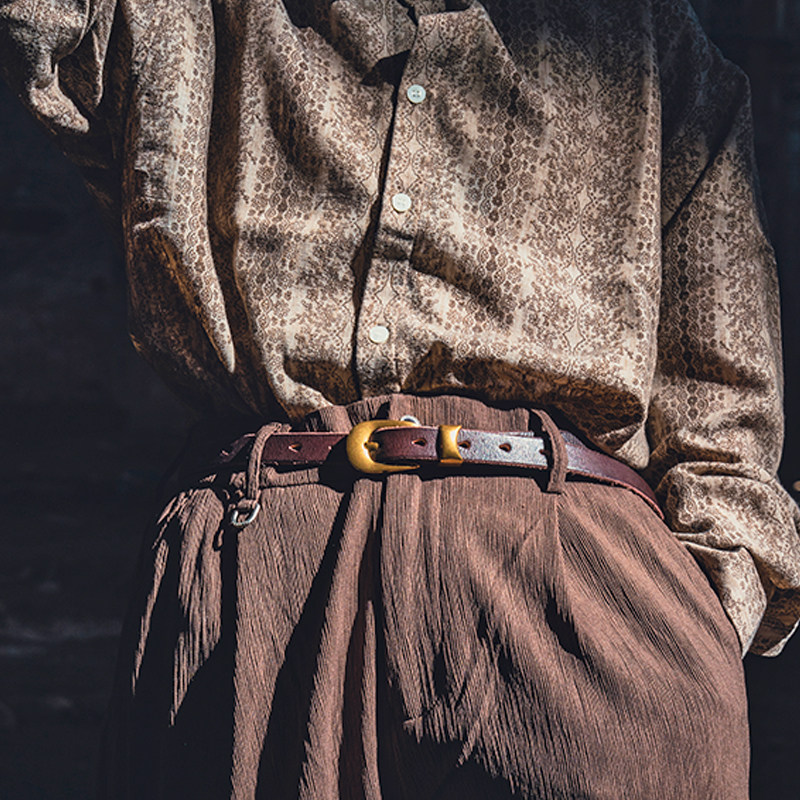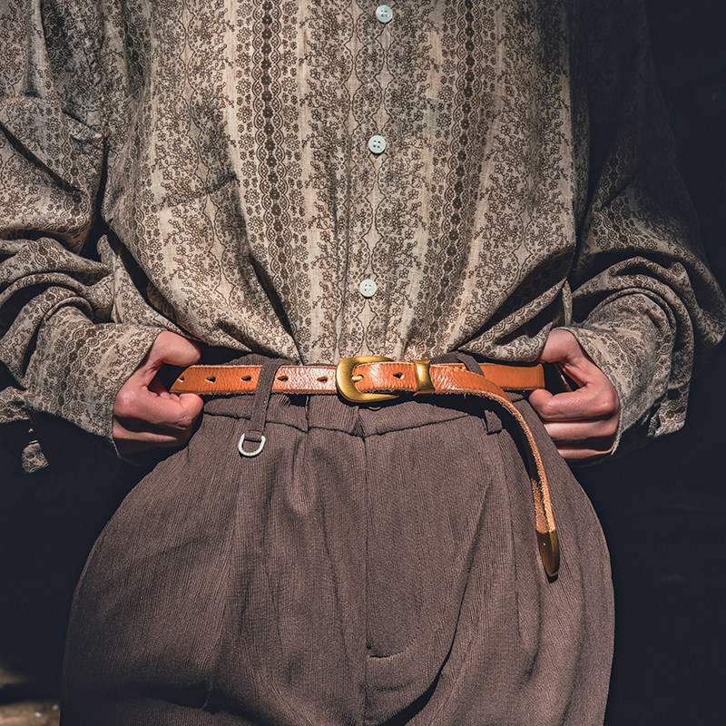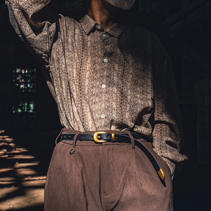 复古百搭通勤纯真牛皮带金属黄铜扣休闲百搭牛仔裤西裤男女士腰带