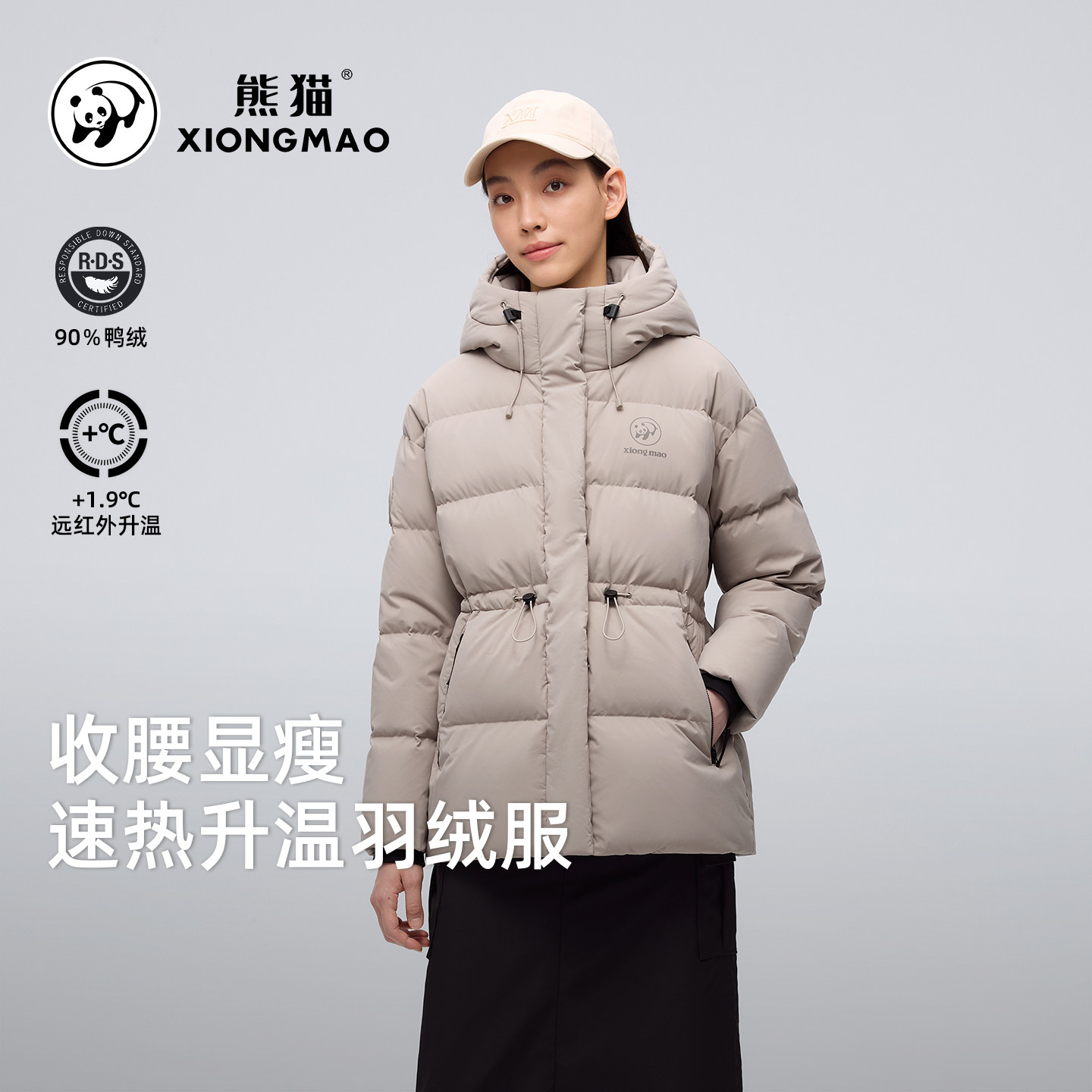 熊猫羽绒服女装2025冬季收腰显瘦短款羽绒衣连帽保暖面包服外套