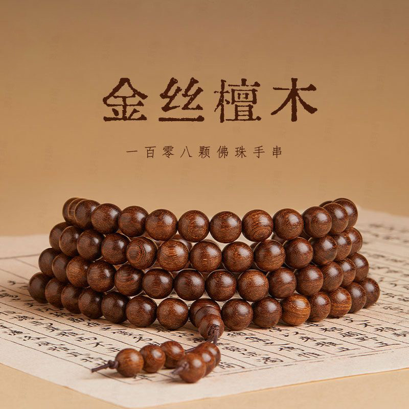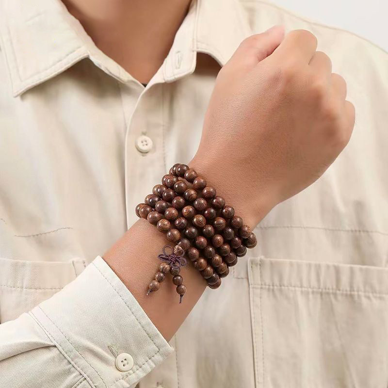多圈108颗木质手串女款黑檀木叠戴盘玩手持佛珠老料檀木手链男款