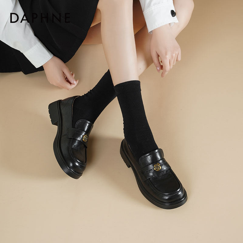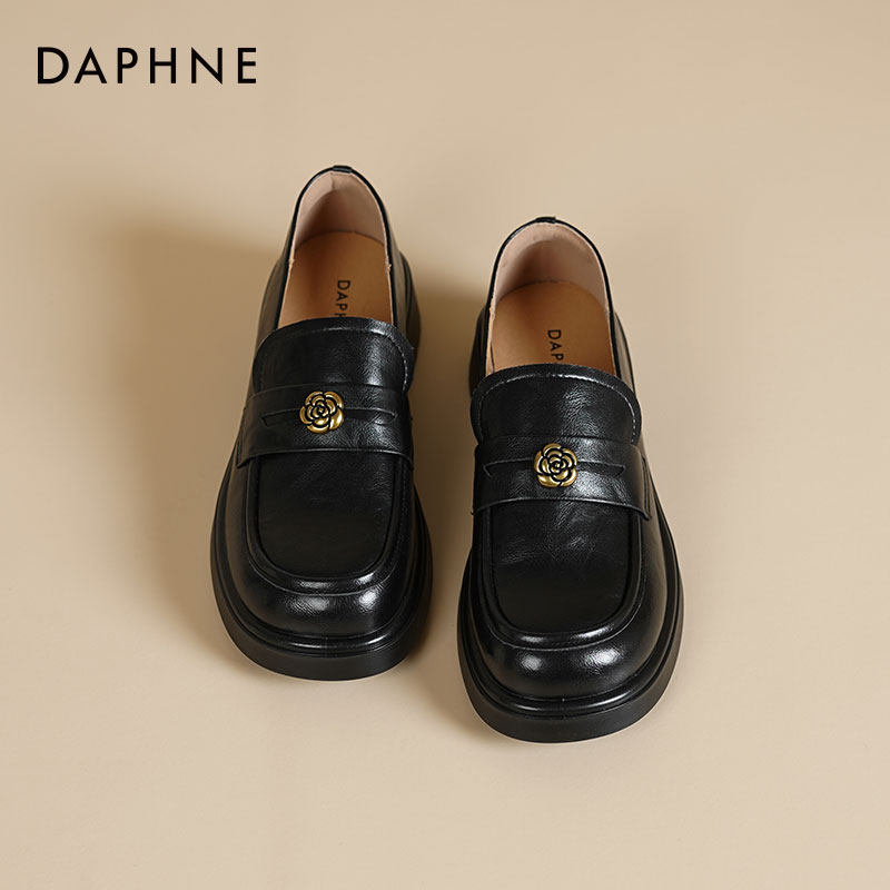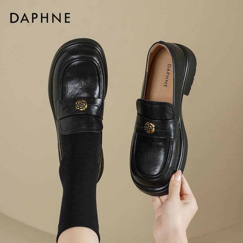 达芙妮厚底乐福鞋女2026新款春季山茶花复古单鞋英伦风黑色小皮鞋