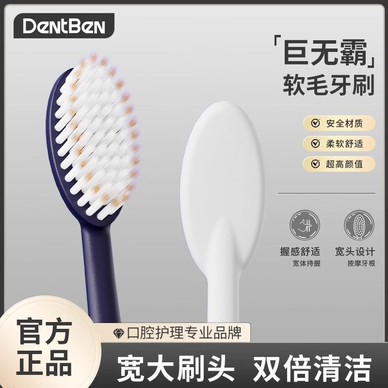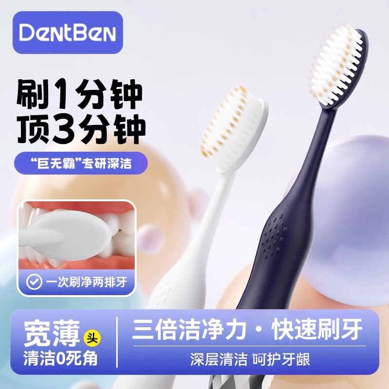 软毛牙刷成人宽头家庭装家用护龈清洁牙缝男女情侣款高颜值2只装