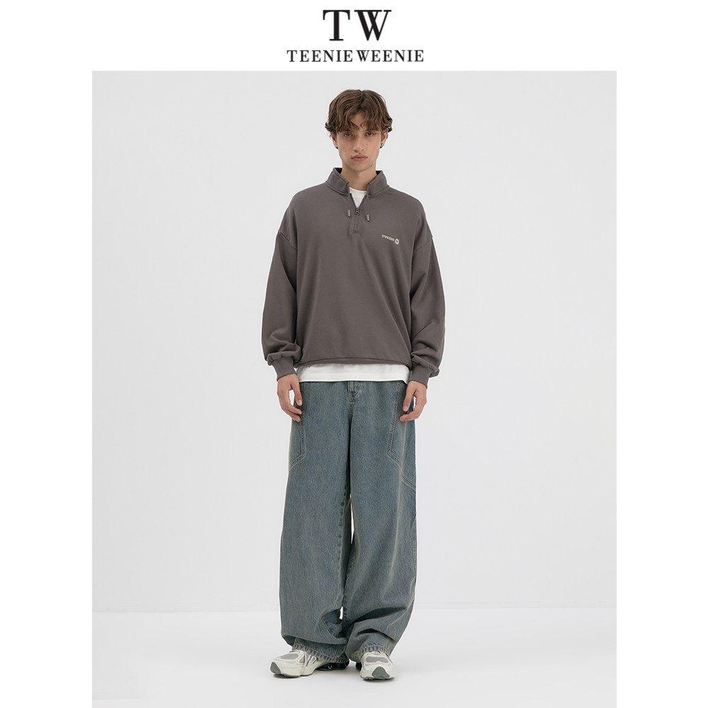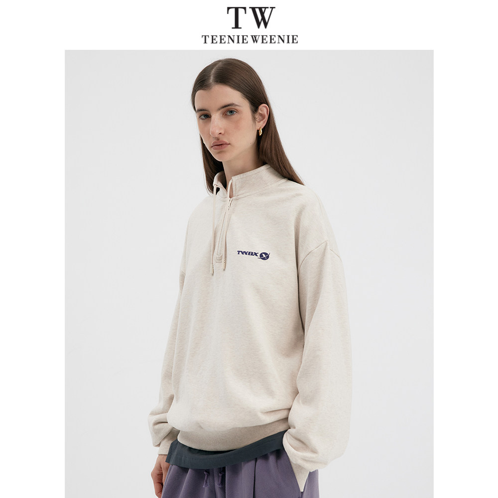 Teenie Weenie小熊男装时尚日式纯棉字母印花复古抽绳半拉链卫衣