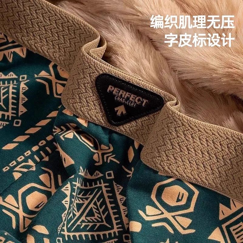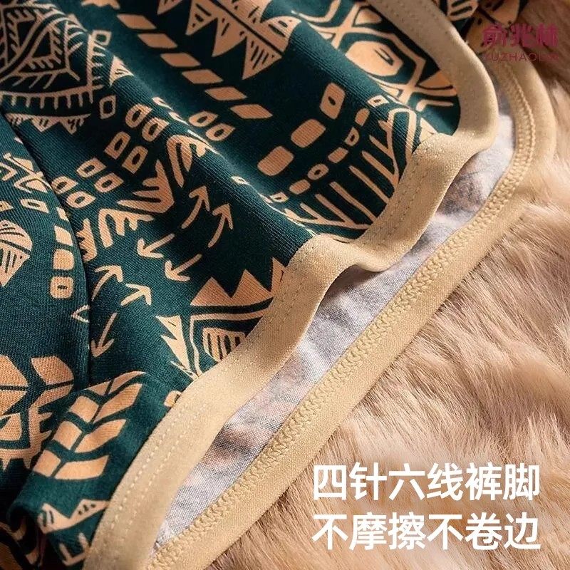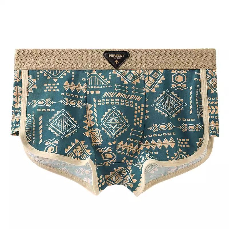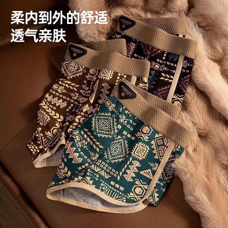 男士内裤纯棉印花抗菌舒适透气平角裤潮流个性国潮短裤衩复古高弹