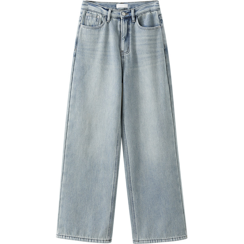 森马牛仔裤女冬抓毛莱赛尔阔腿裤2025新款白色拖地裤蓝色流行高腰