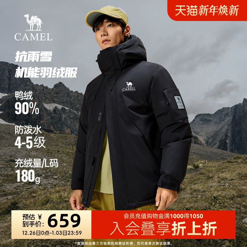 骆驼男装派克羽绒服男冬季新款户外防水短款工装羽绒衣加厚棉袄