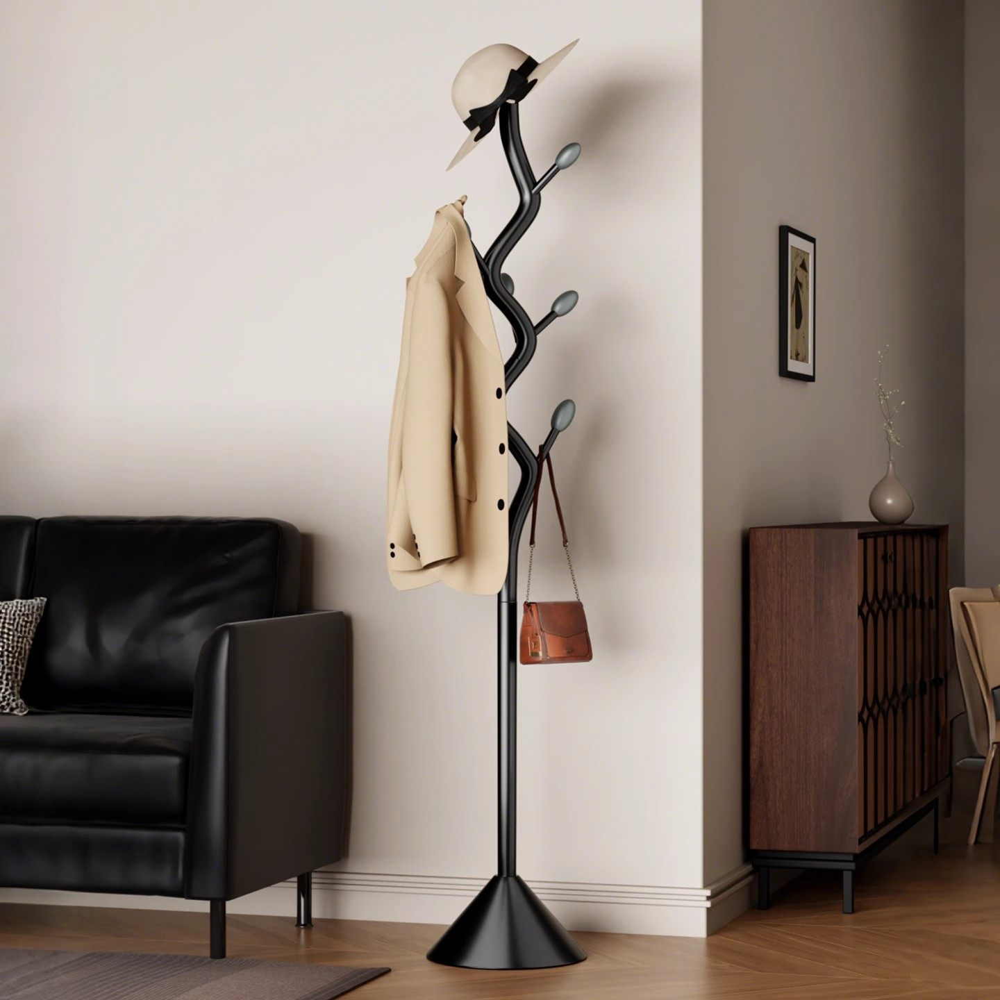 中古风落地卧室衣帽架铁艺复古衣服收纳架子家用客厅可移动挂衣架