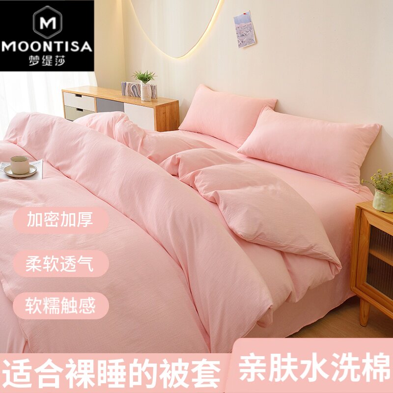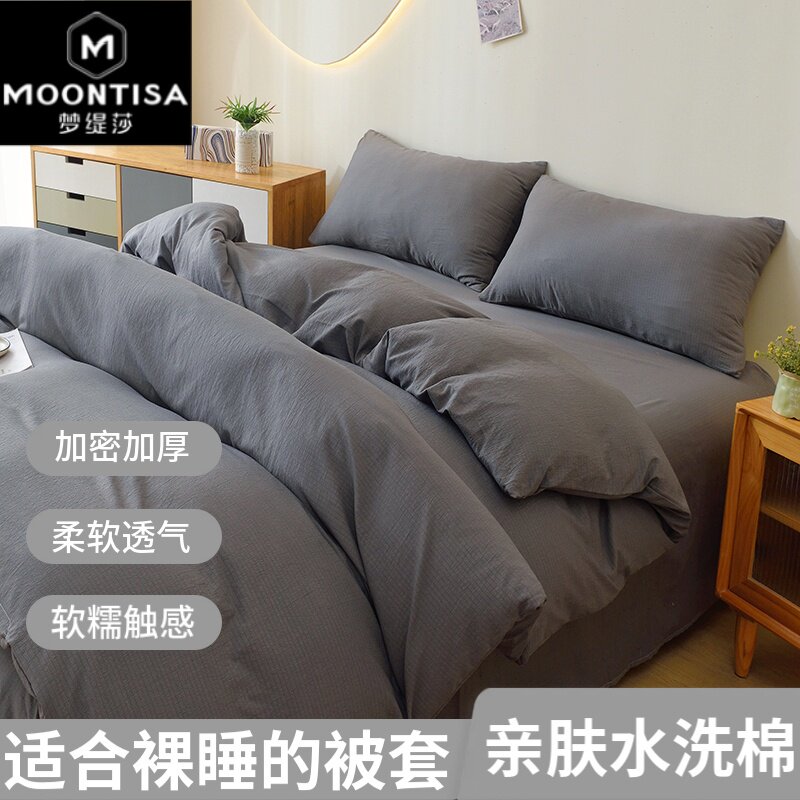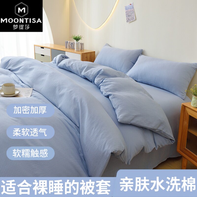 ins风水洗棉被套单件亲肤简约纯色被罩150x200非全棉纯棉冰丝床单