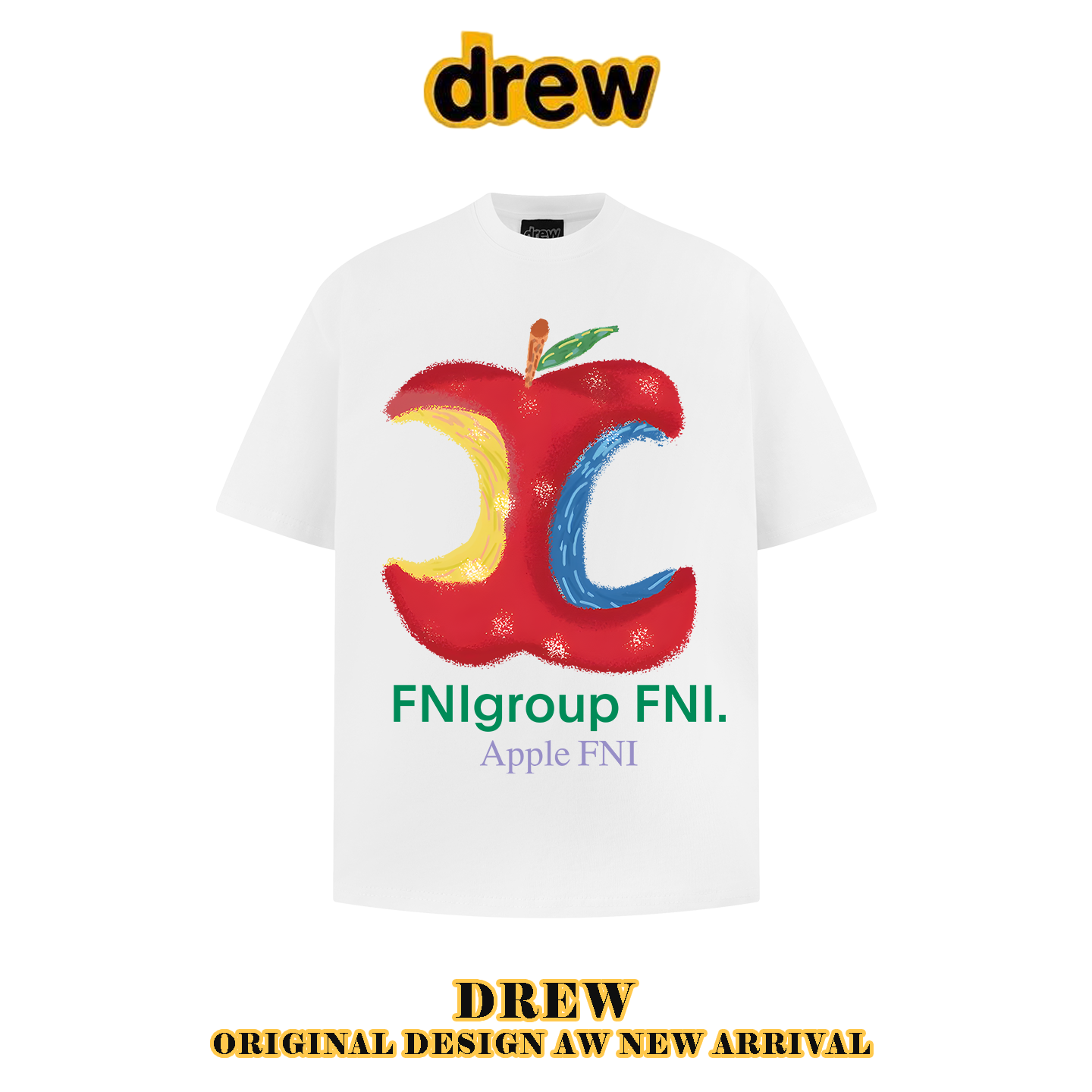 drew潮牌美式抽象苹果印花正肩短袖T恤纯棉重磅休闲复古新款男女