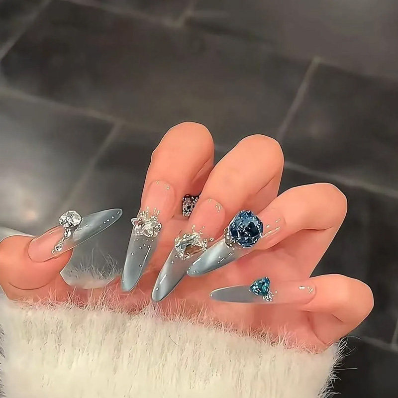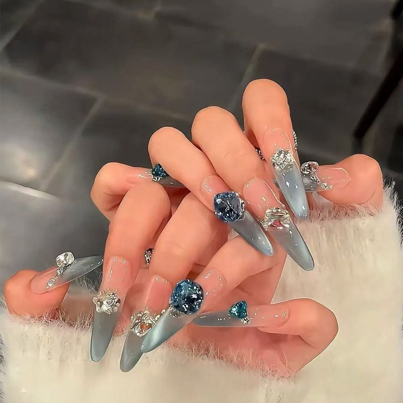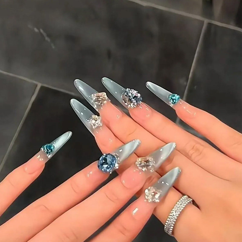 弋弋舞纯手工穿戴甲高级感轻奢2025新款猫眼爆闪法式美甲爆款长尖