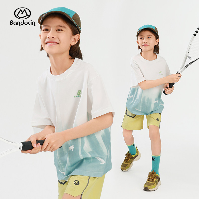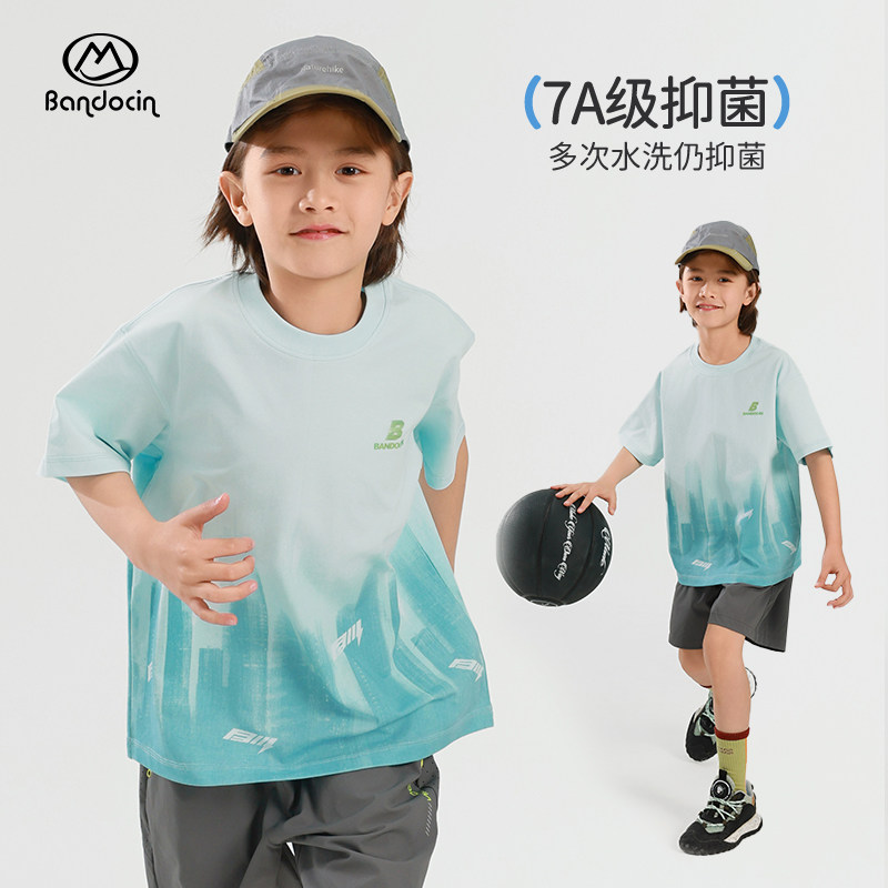 半度闲男童夏装运动速干衣短袖2025新款儿童夏季凉感上衣t恤潮
