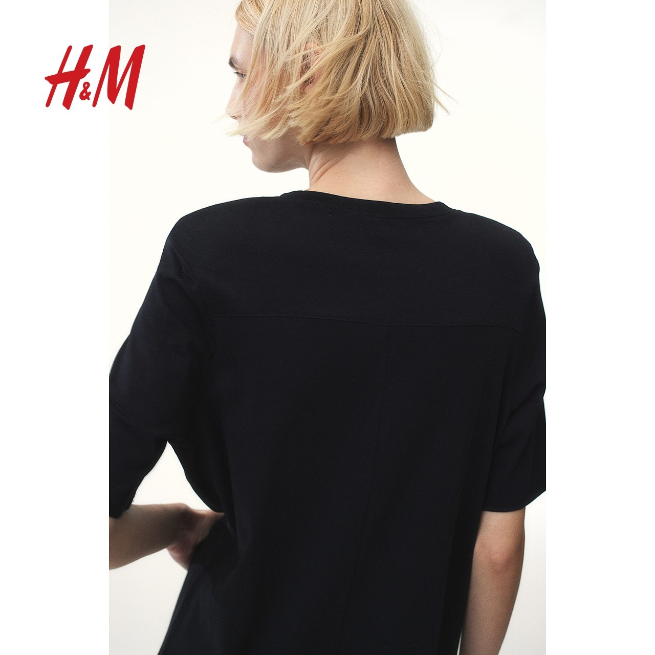 HM女装连衣裙春季休闲五分短袖带垫肩T恤长裙1224679