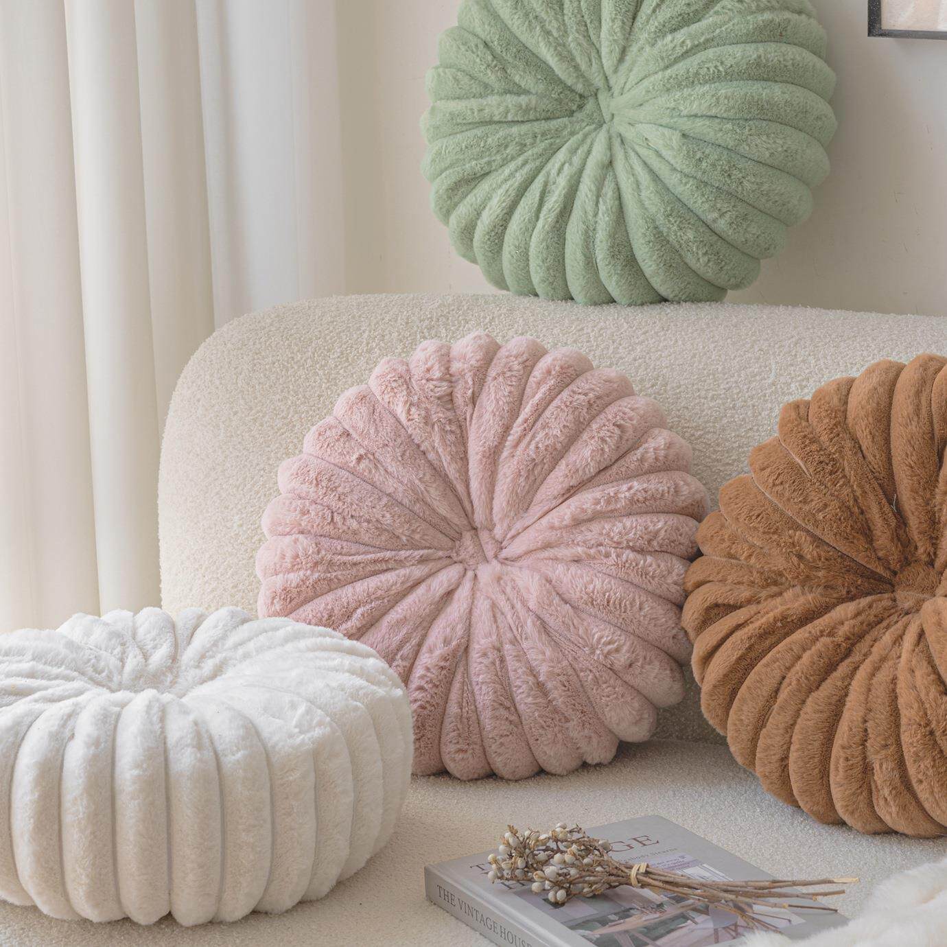 ins风圆形南瓜枕 扎染条纹仿兔毛绒手工车轮抱枕沙发靠枕床头靠垫